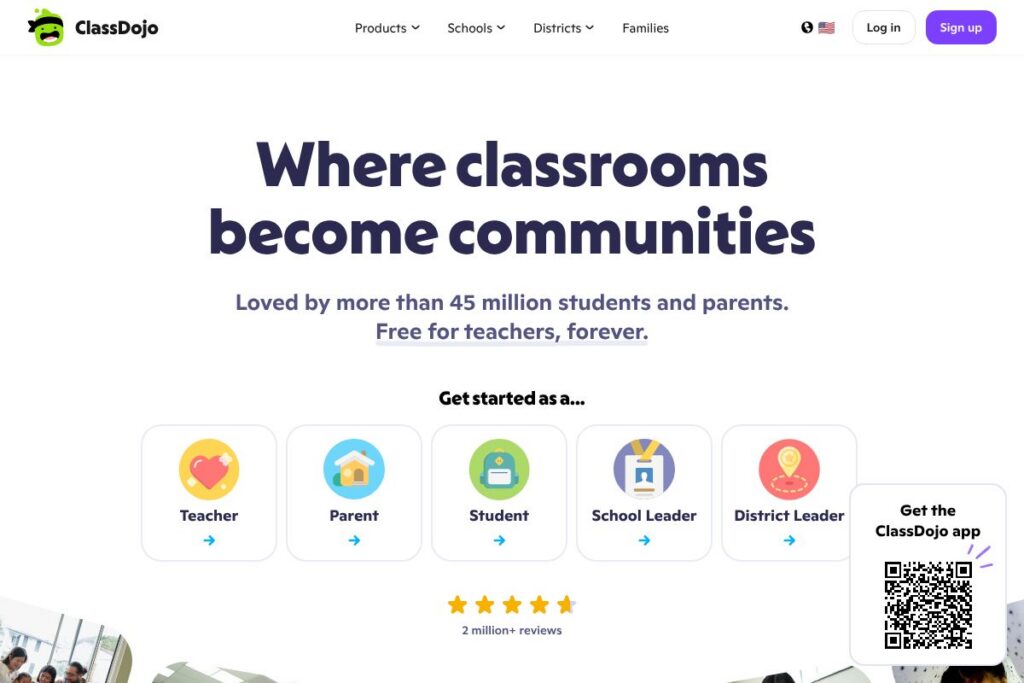 Free: ClassDojo’s core classroom communication, Stories, Portfolios, Points, and Teacher Toolkit are free for individual teachers and families. This includes mobile apps, messaging with translation, and basic classroom management features. View details on the ClassDojo homepage for an overview of included classroom features.