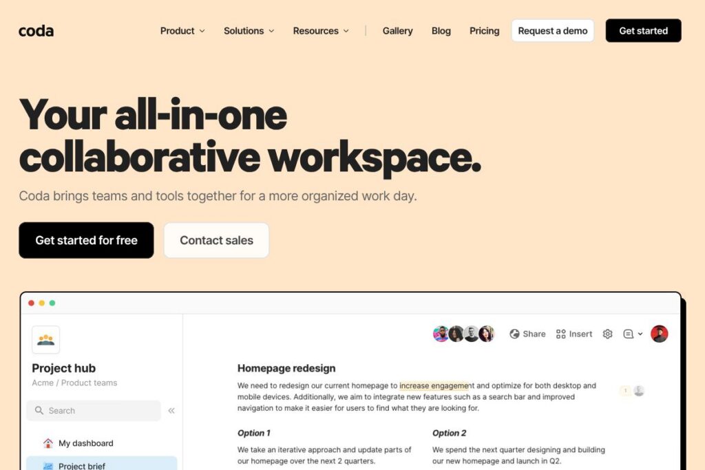 All of this makes Coda especially well suited for product teams, operations groups, and cross-functional squads that need a single source of truth plus the ability to automate tasks without shipping custom software. It scales from simple meeting notes to full team hubs and custom trackers, and is often used to replace multiple specialist tools.