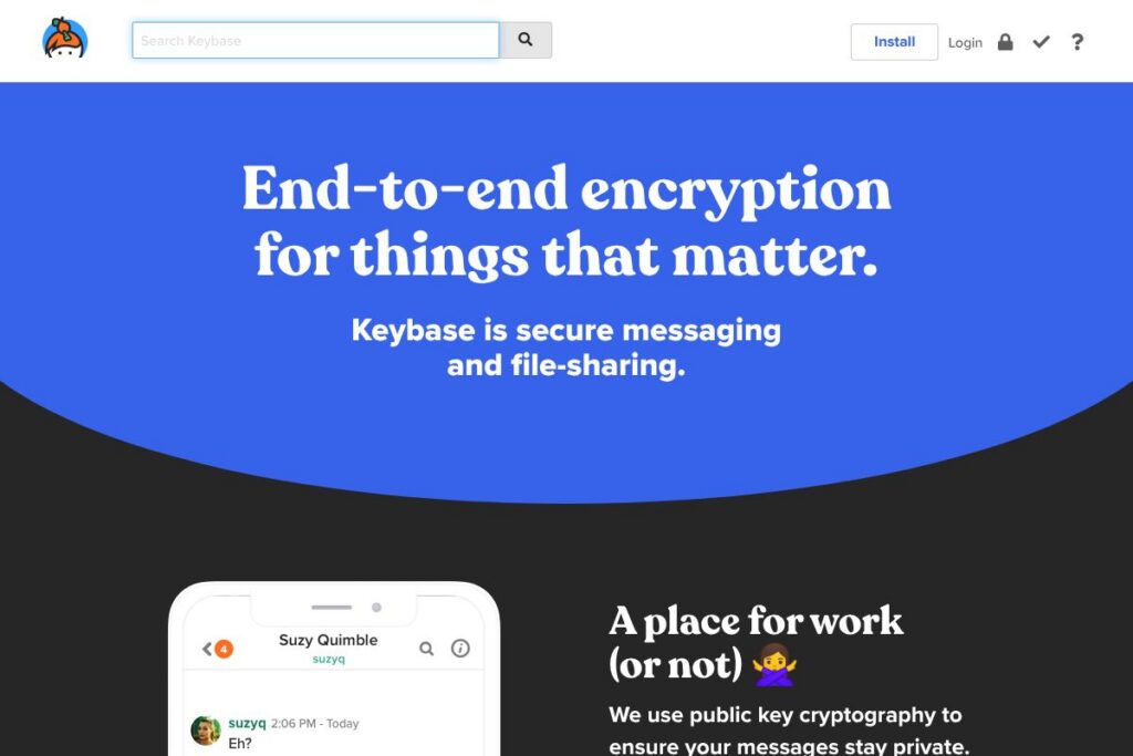 Keybase is used for secure individual and group messaging where end-to-end encryption and verifiable identities matter. Teams use it to run private conversations, store shared documents in encrypted team folders, and coordinate with confidence that participants are who they claim to be.