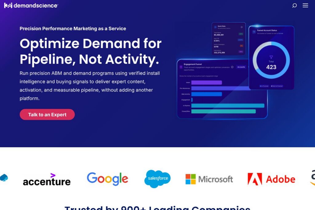 DemandScience is a performance marketing platform for B2B teams that combines verified buyer signals, multi-channel campaign orchestration, and expert services to generate predictable pipeline. It centralizes signals, content distribution, and measurement so marketers spend less time fixing data issues and more time running programs that convert.