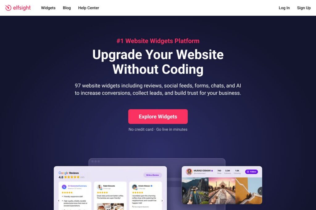 Elfsight is used to add no-code widgets such as reviews, social feeds, forms, and chat to websites. It helps teams add interactive features quickly without engineering resources.