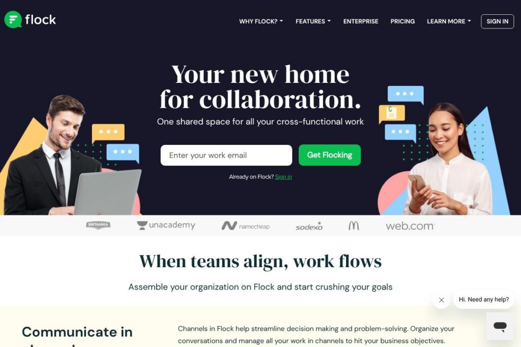 - Centralized channels and threads: Flock consolidates conversations into searchable channels, making historical context easy to locate and reducing email overload.