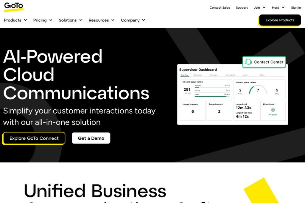 GoTo’s platform combines core communication features with remote IT capabilities. Core offerings include a cloud-based business phone system, a contact center platform for multi-channel support, GoTo Webinar for large-scale events, and remote IT support tools inherited from LogMeIn. The suite also includes analytics, security controls, and integrations with common business systems.