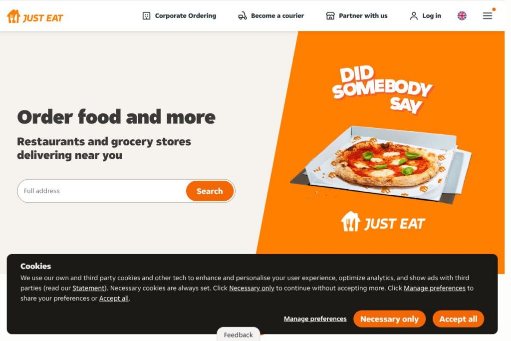 Just Eat aggregates restaurants, takeaways, supermarkets, and pharmacies by location so you can see what delivers to your address. This simplifies discovery when you need a meal or essentials quickly and lets smaller vendors reach local customers.