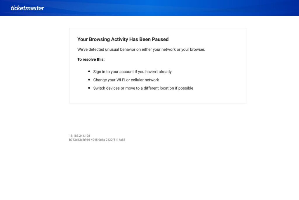Common remediation flows include asking the user to sign in to an existing account, switching to another network, or using a different device. The hosting site typically uses server-side rules, CDN controls, or a bot management service to determine when to trigger the checkpoint and how to proceed after verification.