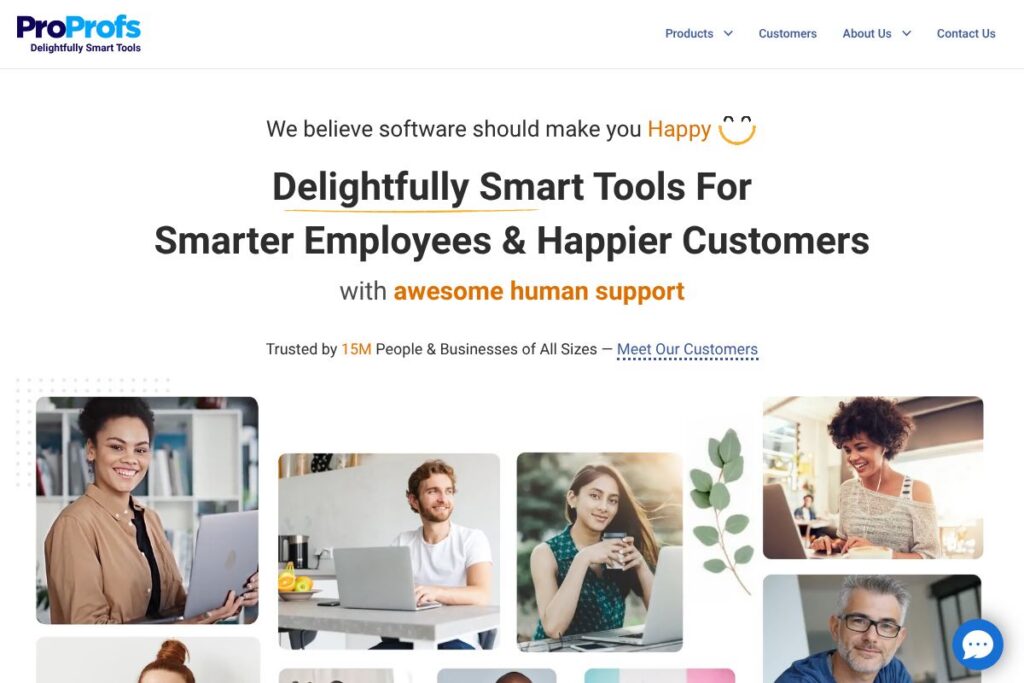 ProProfs is a SaaS suite that combines learning and development tools with customer support and knowledge management features. The platform includes a quiz and assessment builder, a learning management system, a knowledge base, and a help desk aimed at training employees, supporting customers, and measuring outcomes.